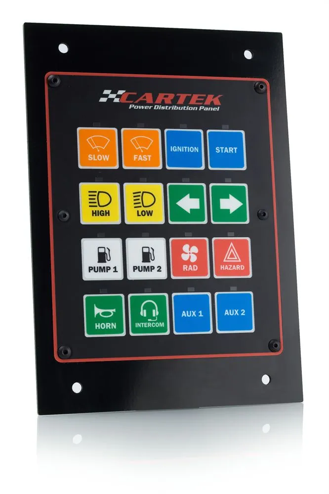 Panel dystrybucji zasilania CARTEK, to w pełni zintegrowane, w pełni elektroniczne rozwiązanie przeznaczone do dystrybucji zasilania w samochodach wyścigowych i rajdowych. Zaprojektowane, aby zastąpić 16 bezpieczników, przekaźników i przełączników, a także różne systemy sterowania. Jednostki te znacznie upraszczają okablowanie, skracają czas budowy, zmniejszają wagę i maksymalizują niezawodność.
