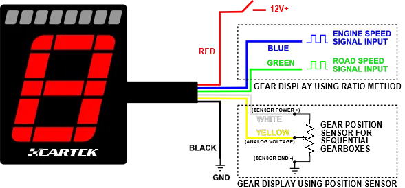 Wskaźnik biegów firmy Cartek to urządzenie montowane na desce rozdzielczej, które ma na celu wskazanie kierowcy aktualnie wybranego biegu. Zawiera także sekwencyjny wyświetlacz zmiany biegów, który może wskazać kierowcy optymalny czas na zmianę biegu na wyższy. Wybrany bieg jest wskazywany przez duży, wielokolorowy, 7-segmentowy wyświetlacz numeryczny, podczas gdy funkcja shift-light jest wyświetlana w górnej części urządzenia przez 8 wielokolorowych diod LED.