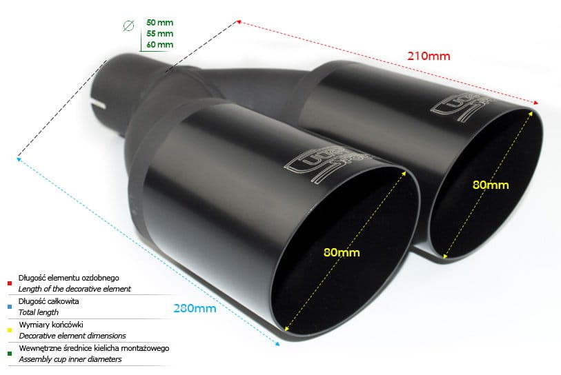 Wymiar zewnętrzny końcówki: 2x Ø80 mm