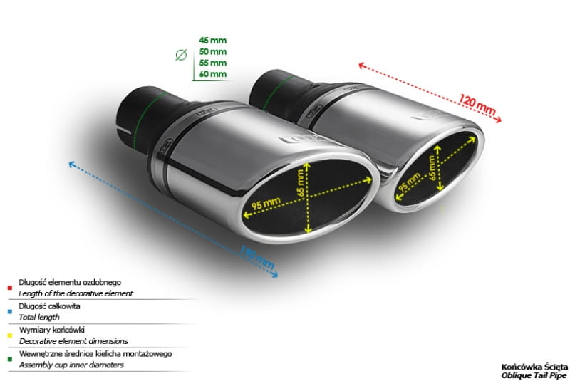 Wymiar zewnętrzny końcówki: 95x65 mm (owalny kształt)
